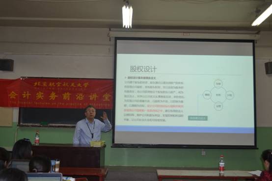 2019年4月13日,中航工业集团中航咨询有限公司董事长兼总经理徐光来到北航经管学院MPAcc教育中心,做客第3期会计实务前沿讲堂,分享的报告题目是《股权设计的道与术》。MPAcc教育中心周宁教授主持了本次讲座,MPAcc师生140余人参加了此次讲座。