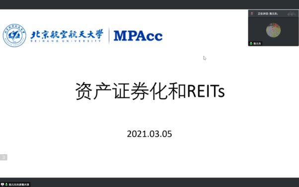 2022年3月5日晚8点,2021级MPAcc学生迎来第七期会计前沿讲堂。本期前沿讲堂邀请到了中国化工工程集团的陈元东老师。陈老师在信贷融资、结构化融资、地产基金、地方政府平台融资、非标准化债权投资、结构化投融资业务及资产证券化等领域具有非常丰富的工作经验。北航经管学院MPAcc教育中心主任白明老师主持了本次讲堂。