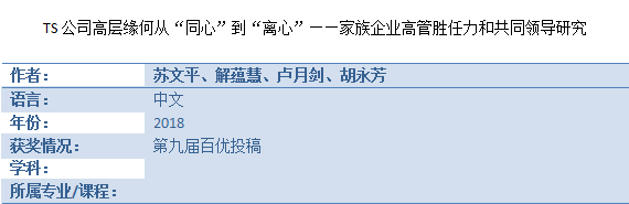 百优案例——《TS公司高层缘何从“同心”到“离心”——家族企业高管胜任力和共同领导研究》