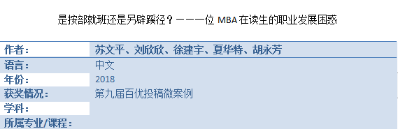 百优案例——《是按部就班还是另辟蹊径?——一位MBA在读生的职业发展困惑》