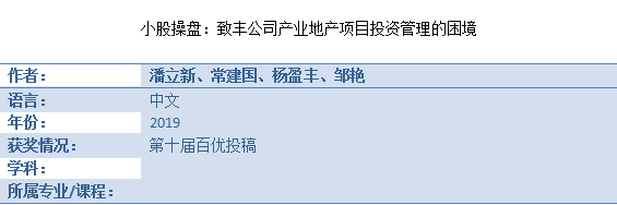 百优案例——《小股操盘:致丰公司产业地产项目投资管理的困境》