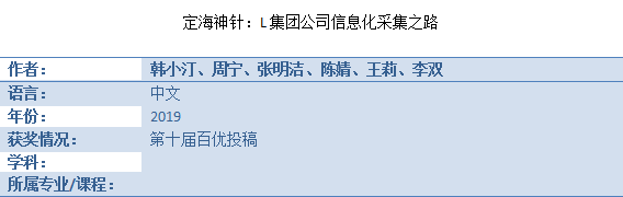 百优案例——《定海神针:L集团公司信息化采集之路》